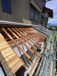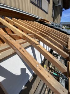 瓦をまくり下葺きをまくり裏板をとり垂木をとりました。