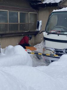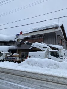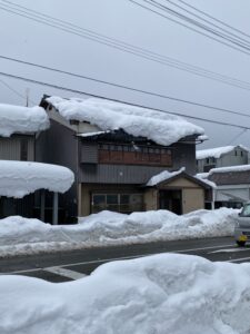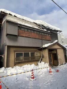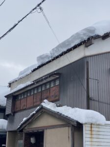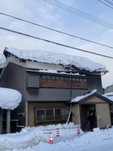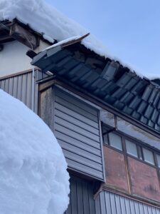R8年1月下旬頃軒先に巻いた雪で屋根が折れてしまいました。