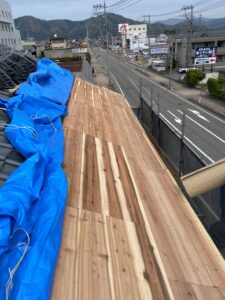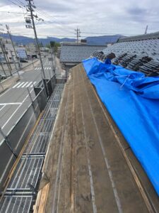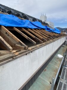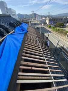 瓦をまくり下葺き(アスファルトフェルト)を取り裏板、垂木を取り