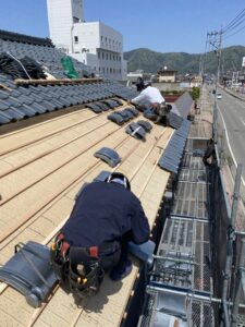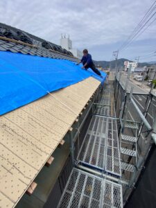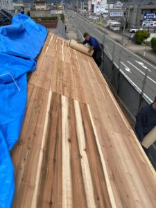 大工工事が終わったら次は瓦工事です。ルーフィングで下葺きをしてか